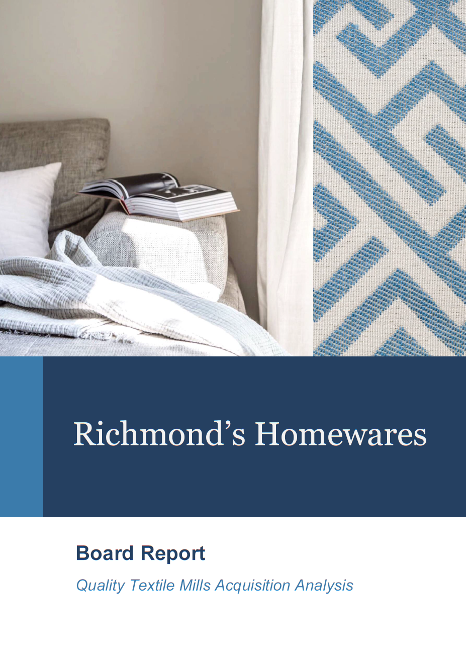 Board Report: Acquisition/Valuation Analysis & Supporting Workings